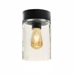 Plafonnier D’extĂ©rieur Tesla En Aluminium Noir Et Verre Clair