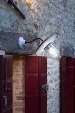 Applique Murale D’extĂ©rieur En Laiton PatinĂ© Et Porcelaine Blanche