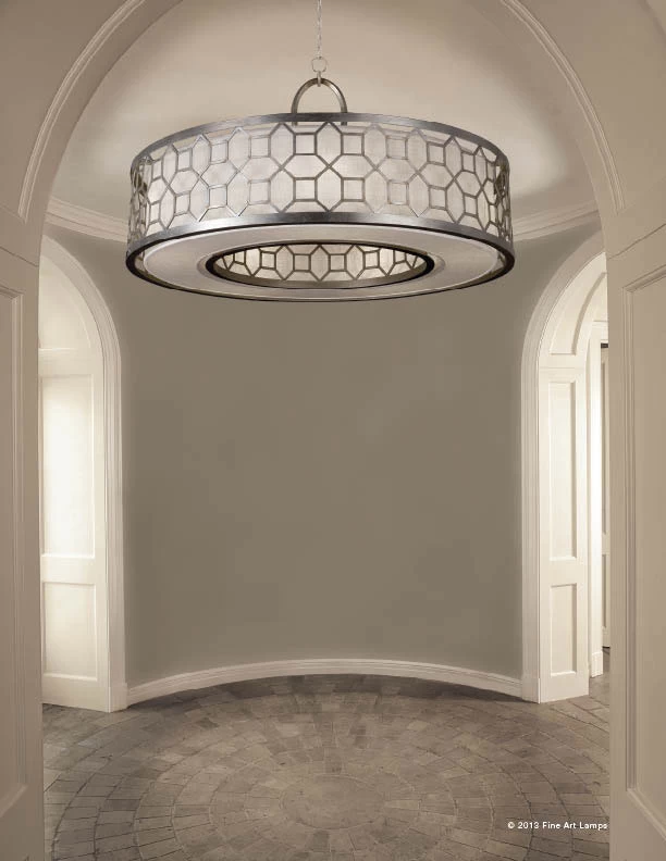 Ce lustre rond Allegretto est dĂ©corĂ© Ă la feuille d’argent, et tendu de lin naturel. Il est constituĂ© d’une structure mĂ©tallique ouvragĂ©e, entourant un abat-jour cylindrique, tendu de lin. Au centre de la suspension, une seconde structure mĂ©tallique est prĂ©sente, qui double la paroi intĂ©rieure de l’abat-jour. L’ensemble est suspendu Ă un large anneau de mĂ©tal, de section carrĂ©e et de forme ovale, raccordĂ© Ă la chaĂ®ne rejoignant le support de plafond, dont l’usage est optionnel: sous un plafond dĂ©corĂ© d’une frise, on pourra attacher ce magnifique lustre Ă un crochet existant. La sĂ©rie Allegretto comprend plusieurs modèles, tous disponibles dĂ©corĂ©s Ă la feuille d’argent ou Ă la feuille d’or: un lustre rond rĂ©fĂ©rence 13100001 et une suspension ronde sur tige rĂ©fĂ©rence 13100003. La version dĂ©corĂ©e Ă la feuille d’or de ce modèle est disponible parmi les options de commande ci-dessous.