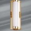 Applique Simple à Tige De Laiton Patiné, Porcelaine Blanche Décorée Et Verre Opale Lisse
