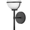 Applique Simple à Tige De Laiton Patiné, Porcelaine Blanche Décorée Et Verre Opale Lisse