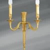 Travail exceptionnel de décor pour cette applique dorée en bronze massif de style Directoire. Sa finition or vif lui donne toute sa brillance et la force de sa présence. La vasque légèrement évasée qui protège sa lumière halogène permet un éclairage puissant et indirect, éventuellement réglable. Son socle mural, composé de rectangles concentriques encadrant un sujet de décoration central est un chef d’œuvre en lui-même. Les références aux feuillages viennent rappeler que le style Directoire est un prolongement du Style Louis XVI. Ceci est particulièrement perceptible quand on regarde le bras portant lumière autour duquel s’enroule avec une élégance exemplaire les feuilles d’acanthe. Cette qualité de travail hors du commun de cette applique est le fruit du savoir-faire ancestral et artisanal de la Maison Lucien Gau, entreprise emblématique du Patrimoine Vivant Français. Vous pourrez consulter une autre applique dans le même esprit, sous la référence 16060105.