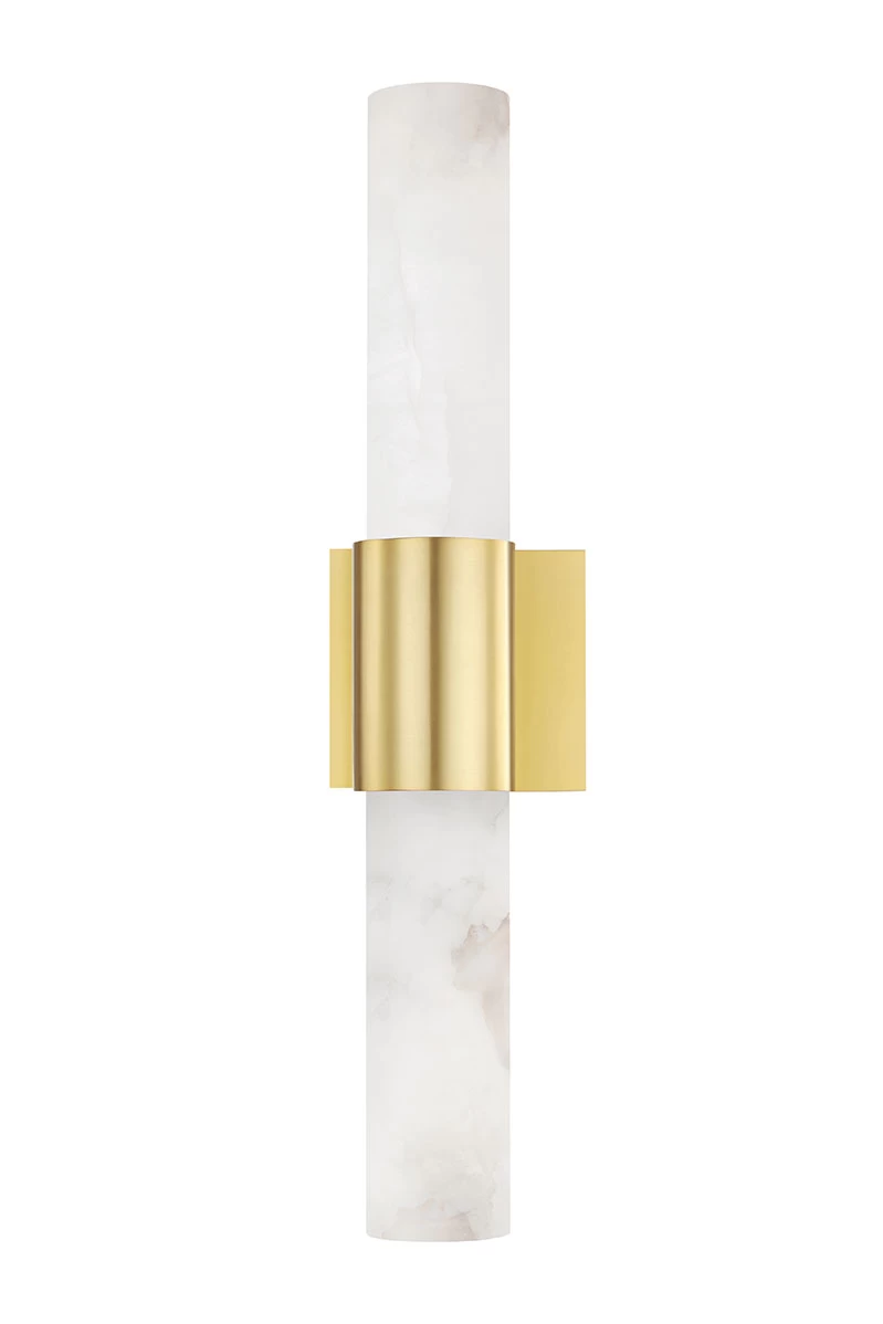 Une esthétique minimaliste avec Barkley, une applique dotée d’un cylindre d’albâtre et d’une bague de laiton dorée. Le modèle qui peut se pose aussi bien à la verticale qu’à l’horizontale, est fixé sur un support mural rectangulaire lui aussi doré. La lumière diffusée par deux ampoule à travers l’albâtre offre un éclairage doux.