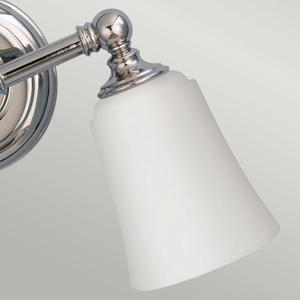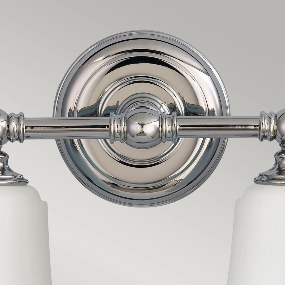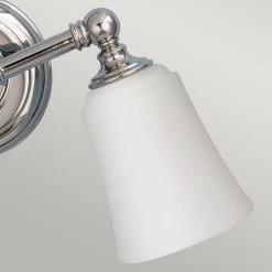 Une double applique Huguenot Lake de salle de bain, au design Ă©lĂ©gant. Elle est composĂ©e de deux diffuseurs en forme de cloche blanche opaque fixĂ©s sur deux bras courts en angle droit qui se rejoignent sur un socle circulaire en mĂ©tal, finition chrome poli. Elle est munie d’une protection IP44 conforme Ă l’usage en salle de bain. Elstead est une entreprise anglaise hĂ©ritĂ©e d’une forge en activitĂ© depuis le XVIIème siècle. Aujourd’hui spĂ©cialisĂ©e dans la lumière, la marque propose une production Ă©clectique de luminaires d’intĂ©rieurs et d’extĂ©rieurs. La collection Hugenot Lake comprend Ă©galement une applique simple visible sous la rĂ©fĂ©rence 18010027 et une applique triple sous la rĂ©fĂ©rence 18010029.