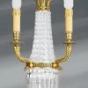 Cette applique murale de pur style Louis XVI et d’une parfaite symĂ©trie arbore avec Ă©lĂ©gance ses bras en volutes tressĂ©es portant double bougeoirs. Le bronze massif du meilleur alliage utilisĂ© pour sa fabrication permet une prĂ©cision et une puretĂ© des dĂ©tails du dĂ©cors extrĂŞme. La patine vieil or donne aux plis du drapĂ© relief et profondeur. Son corps composĂ© d’un fin drapĂ© retombant et fini par deux pompons Ă©lĂ©gants entoure, en son extrĂ©mitĂ© haute, le bouton mural dĂ©licatement dĂ©corĂ© en fleur qui permettra son accrochage. Les bras en volutes torsadĂ©es et doublĂ©s d’une plus fine tresse se recourbant, rappellent la forme des Ă©pis de blĂ©. Ses tresses sont attachĂ©es au corps de l’applique par un magnifique lien merveilleusement travaillĂ© ou simplicitĂ© rime avec Ă©lĂ©gance. Les bassins et bobèches font, quand Ă eux, rĂ©fĂ©rence aux lignes classiques de la pĂ©riode antique autre Ă©lĂ©ment caractĂ©ristique du style Louis XVI. Cette applique existe aussi en trois lumières visible sous la rĂ©fĂ©rence 16060047.