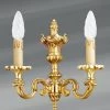 Dorée et patinée vieil or, fine et élégante, cette petite applique murale en bronze massif, de style Louis XVI, porte ses deux lumières avec grâce. Sa fabrication et son décor parfaitement travaillé sont assurés par les ateliers de la maison Lucien Gau, maître en la matière. Son dessin reprend les canons du style Louis XVI: drapés, festons et courbures pour les décors du sommet de l’applique et de sa base, alliés à la présence de feuilles, référence à la nature et à la présence de formes géométriques rappelant les thèmes antiques pour la forme du pied, les base des bobèches ainsi que celle du sommet du décor. Sa petite taille permet de la placer dans des couloirs ou des entrées de dimension classique, la qualité de son exécution en fait un objet d’art remarquable. Elle existe cependant dans des dimensions supérieures: en trois lumières sous les références 16060029 et 16060031 et en cinq lumières sous la référence 16060028.