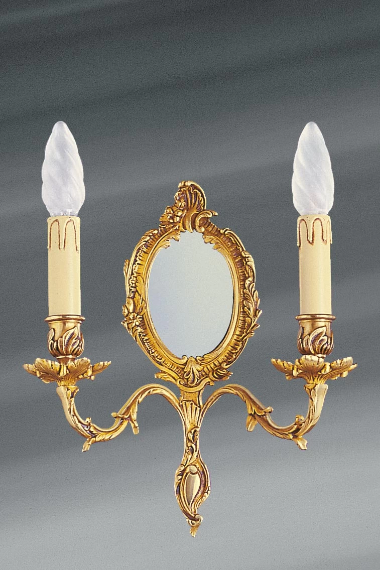 Munie d’un miroir ovale, cette merveilleuse applique murale vieil or Ă deux bougeoirs en bronze Louis XV est rĂ©alisĂ©e selon un dessin symĂ©trique. Au centre, un miroir ovale ornĂ© d’un cadre en bronze dĂ©licatement sculptĂ© se poursuit dans sa partie infĂ©rieure par un Ă©lĂ©ment vertical assorti, Ă la façon d’un manche. S’en Ă©chappent deux branches recourbĂ©es, portant bougeoir Ă leur extrĂ©mitĂ© et dĂ©corĂ©es de façon assortie. Les bassins, coupelles placĂ©es Ă la base des bougeoirs, sont sculptĂ©s en feuilles Ă©vasĂ©es. La rĂ©alisation, d’une qualitĂ© remarquable, est effectuĂ©e selon les mĂ©thodes les plus traditionnelles, en France, dans les ateliers de Lucien Gau. Le bronze, massif, est travaillĂ© dans une patine vieil or. Il existe dans la mĂŞme collection plusieurs appliques murales Louis XV, Ă trois lumières (rĂ©fĂ©rences 12020228, 12020248 et 12020254), Ă deux lumières (rĂ©fĂ©rences 12020230, 12020247, 12020255 et 12020258) et Ă une lumière (12020259, 12020281).