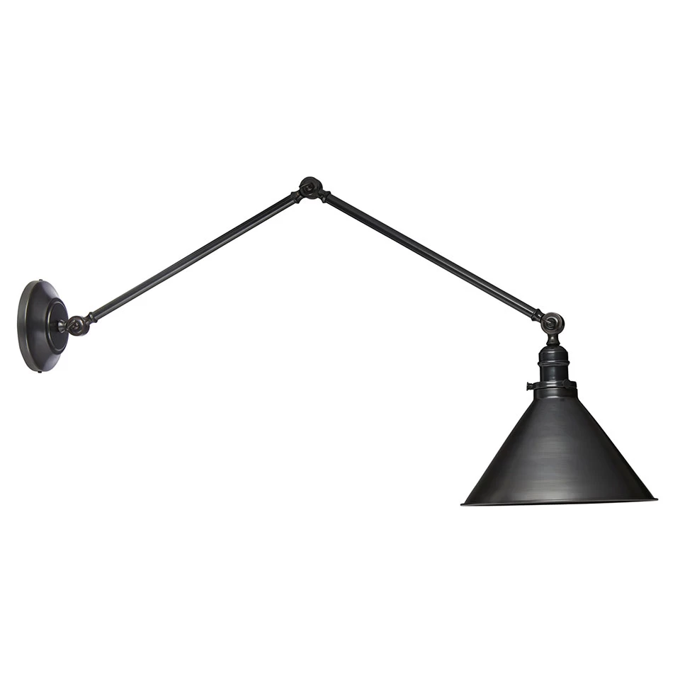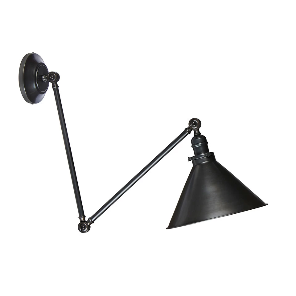 Inspirée des lampes provençales du milieu du 19ème siècle, cette suspension articulée en bronze noir patiné de la collection Provence est composée de deux bras articulés par de petites rotules, et d’un abat-jour conique lui aussi articulé. L’intérieur de l’abat-jour est en laiton naturel. L’intérêt de ce modèle rétro réside dans sa flexibilité de disposition grâce à aux 3 articulations mais aussi grâce à sa finition bronze noire qui lui permet de s’intégrer dans n’importe quel environnement. La marque Elstead descend d’une forge anglaise en activité depuis le XVIIème siècle. Productrice de luminaires depuis les années 1960, l’entreprise propose aujourd’hui une gamme éclectique de luminaires artisanaux et modernes, d’intérieur et extérieur, en explorant des directions esthétiques variées. La collection Provence comprend également des variantes de ce modèle, sous forme de suspensions (18010057, 18010058, 18010060) ainsi que trois petites lampes (18010061, 18010062, 18010063), un lampadaire (18010005) et une lampe de table (18010006), disponibles dans les options de commande.