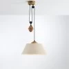 Cette applique simple se caractérise par l’alignement de trois éléments de porcelaine blanche décorée, le support mural et deux cabochons enfilés sur une tige en laiton vieilli perpendiculaire au mur de fixation. Une verrerie évasée en verre opale et à bords lisses est fixée à cette tige horizontale. Les parties en porcelaine blanche sont décorée d’un motif bleu en croisillons et ellipses peint à la main. Cette applique est également disponible en verre plissé (voir l’applique double référence 12120078 qui sur sa photo est équipée de cette verrerie opale plissée). On peut également commander cette applique murale en porcelaine blanche unie. La lumière est fournie par une très standard à vis E27, on peut donc, si on le souhaite, utiliser une ampoule LED: le verre opale maintient un très bel effet esthétique même en employant ce type d’ampoules. Cette applique murale est fréquemment installée dans des cuisines de prestige, notamment dans des maisons de campagne méditerranéennes. On peut toutefois l’employer dans des environnement de style traditionnel, sous toutes les latitudes! La fabrication, d’une qualité exceptionnelle, est menée dans les ateliers du fabricant, situé à Trévise, près de Venise.