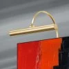 Classique et munie de 2 ampoules Ă culot Ă vis, cette applique pour tableau en nickel poli est au bout d’un bras courbe Ă 90°. Le rĂ©flecteur est cylindrique. Le support mural est rectangulaire. C’est un produit de la sociĂ©tĂ© allemande Baulmann et Leuchten, spĂ©cialiste du luminaire d’intĂ©rieur de haute qualitĂ© depuis 75 ans.