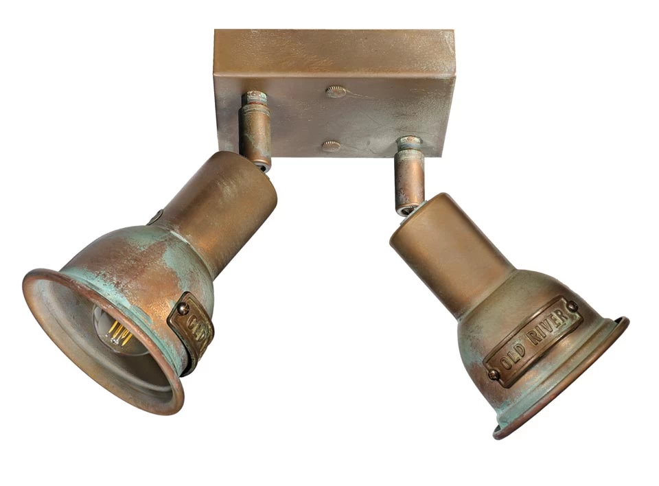 Un joli duo de spots d’intérieur, compact et issu de la gamme Marine, évoquant l’univers d’un ancien navire industriel. Les deux spots composés d’une cloche étroite de laiton sur court bras articulé sont fixés sur un socle carré en laiton massif. Celui-ci est travaillé d’une finition vieillie qui donne une patine authentique au laiton, parcouru de touches de vert-de-gris. La maison italienne Moretti utilise un laiton massif d’excellente qualité, proposant ainsi des luminaires très solides. Ce modèle polyvalent peut être fixé tant au mur qu’au plafond.