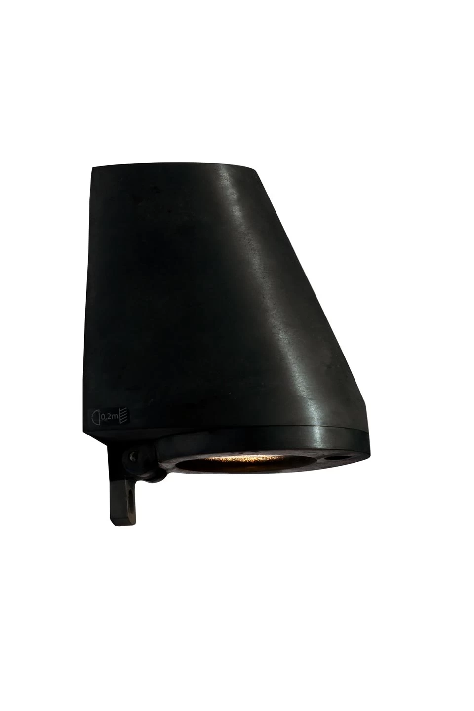 Cette balise de jardin Beamy est petite applique dont la forme de l’abat-jour en biais rappelle celle d’une cloche. Pour ce modèle l’applique est en laiton avec une finition noire mate patinée. La balise bénéficie de la protection IP44.