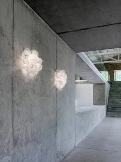 AĂ©rienne et dĂ©licate, Blum est une applique au design contemporain et efficace. Elle est constituĂ©e d’un amoncellement de pelotes de fil d’acier inoxydable, matĂ©riau signature de la collection, emmĂŞlĂ©s pour former ces sphères assemblĂ©es autour de l’ampoule, crĂ©ant un volume nuageux et presque transparent Ă la lumière. Le fil est peint en blanc, ce qui lui confère une durabilitĂ© supĂ©rieure.