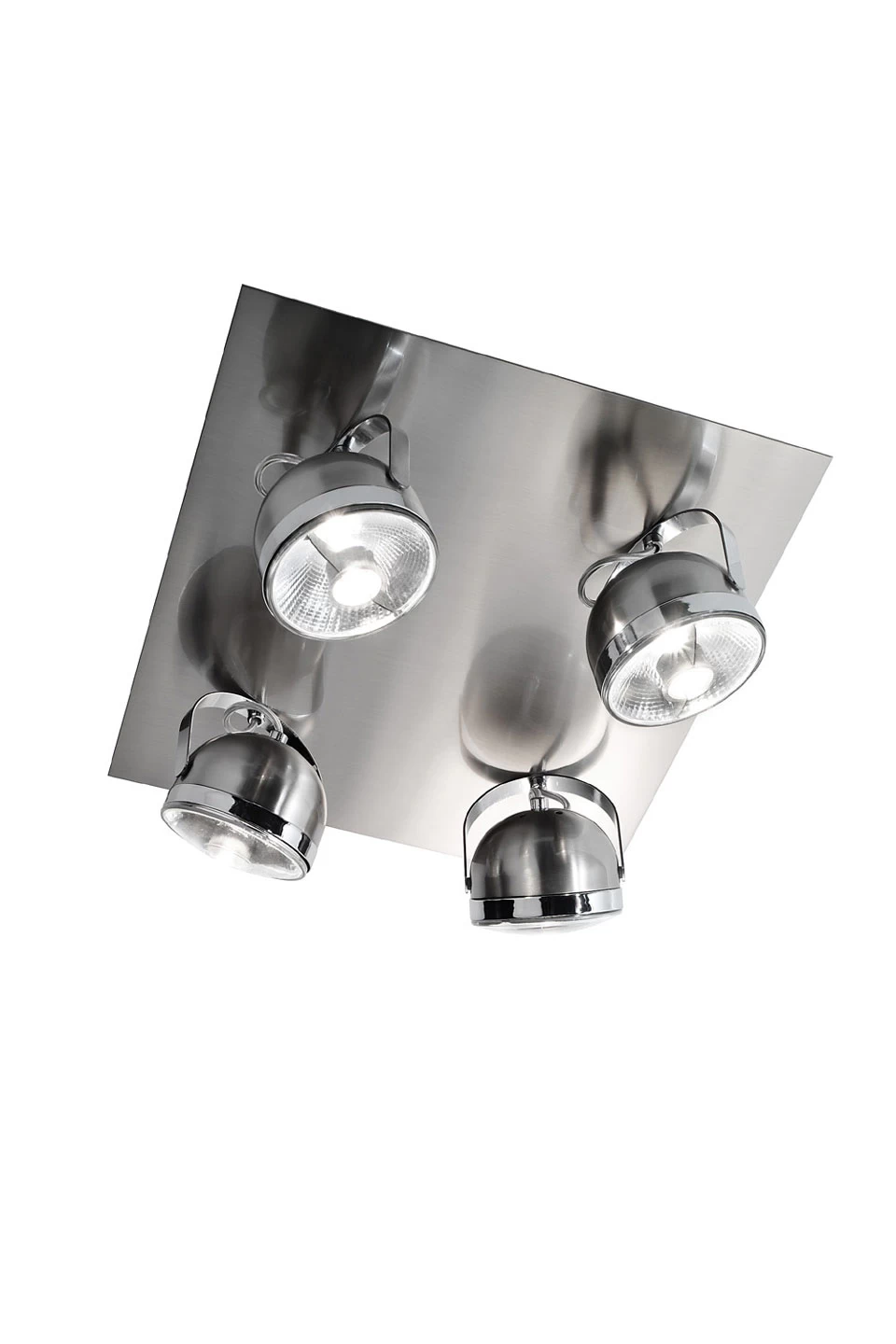 Une inspiration rétro tirée des phares de moto vintage pour la collection Boogie dont est issu ce plafonnier 4 spots orientables blanc. Simple et pratique, le plafonnier Boogie est équipé d’une feuille métallique de format carrée fixée au plafond, sur laquelle sont placés les quatre spots tout en rondeur et montés sur un U de métal qui permet l’orientation de chacun des spots indépendamment des autres et créant un éclairage potentiellement vaste et complet. L’ensemble des parties métalliques sont en finition blanche, excepté le cerclage de chacun des spots qui est en finition chromée. La marque espagnole Luz Difusion en activité depuis 1985 développe une collection qui mélange design industriel, rétro et minimaliste, avec une attention particulière pour la qualité des matériaux, essentiellement le verre et le métal.