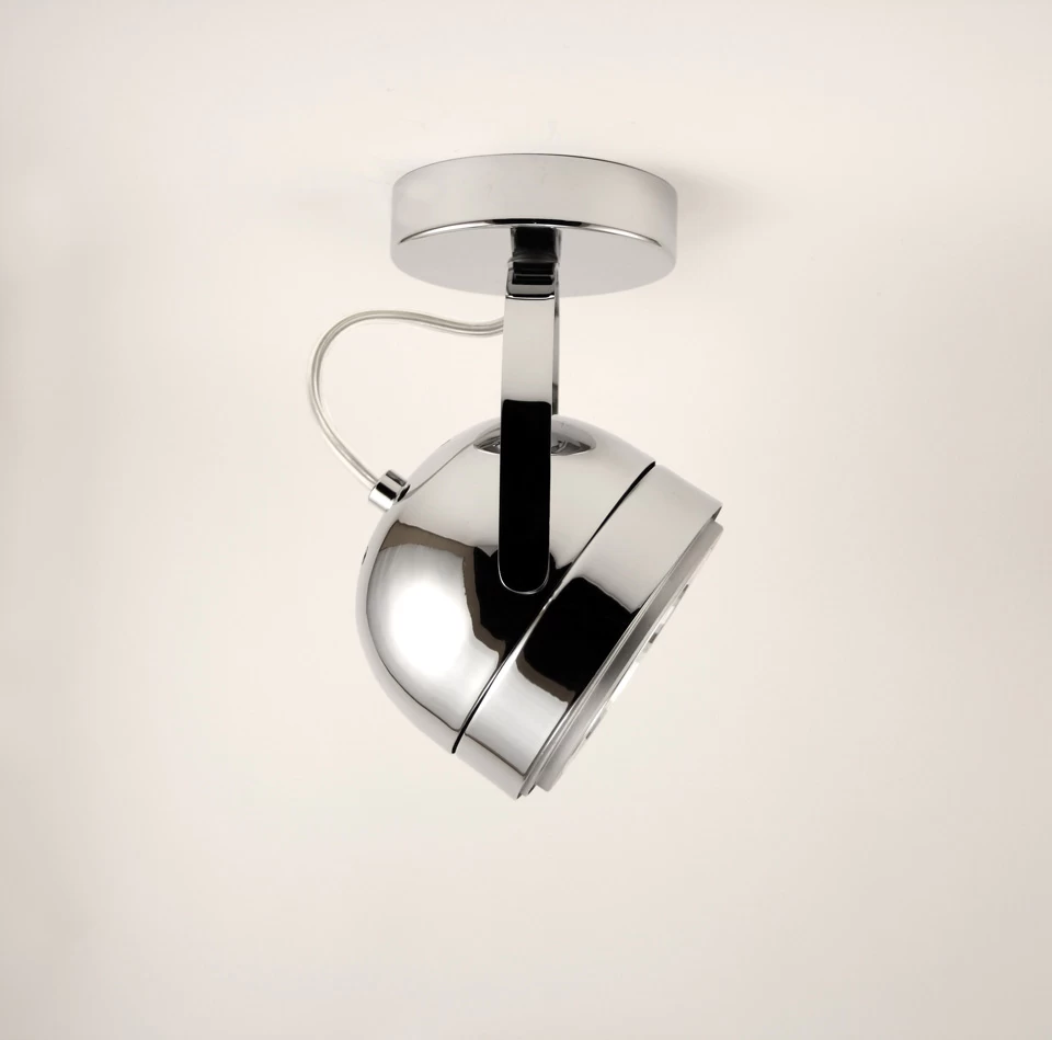 Le spot Boogie W1 est un spot rond en métal finition chromée. Inspirée des phares des anciennes motos, la collection Boogie offre une grande variété d’éclairage de style rétro pour une utilisation, soit domestique, soit publique. Il y a dans la gamme Boogie, des spots simples, des plafonniers, des spots double ou triple. Des suspensions sur tige rigide de 3 dimensions ainsi que sur câble souple. Tous les luminaires de la gamme sont en métal avec 5 finitions possibles cuivre, blanc, noir, chromé ou doré mat. Le câble est recouvert de silicone et l’intérieur est en téflon. Si vous trouvez pas la combinaison produit-couleur sur ce site, n’hésitez pas à nous contacter. Voir également dans le même esprit les luminaires Mini Boogie.