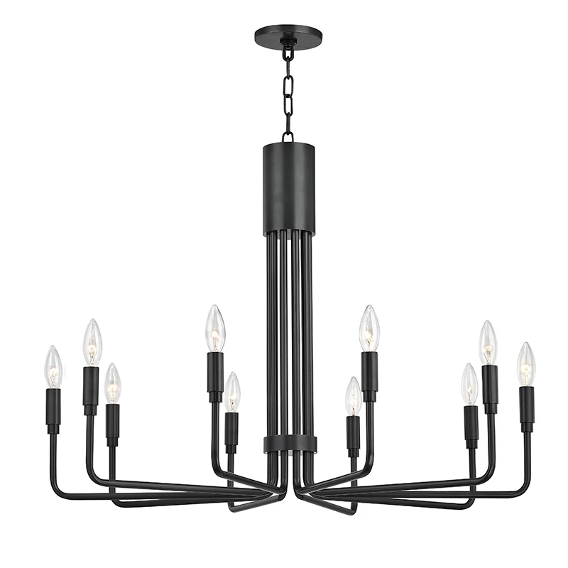 Un superbe lustre au design contemporain et épuré. La Brigitte 6 lumières est dotée d’armature constituée de bras laiton organisés en étoile, assemblés en bouquet autour d’un cylindre central suspendu sur une chaine au plafond. Chaque bras est retroussé pour accueillir une ampoule sur une douille tubulaire sobre. La finition bronze patiné noir donne une patine dans les tons noirs qui confère une élégance certaine au modèle. Le résultat est un superbe chandelier qui évoque avec modernité un objet du passé. Hudson Valley, qui rassemble plusieurs maison américaines en une, développe une gamme de luminaire qui puise son inspiration dans une grande variété de style et d’époque, avec une attention particulière à la qualité de ses produits.
