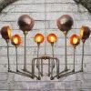 Dimensions du modèle 6 lumières: 63,5cm de diamètre, 48,3cm de hauteur, support de plafond de 14cm de diamètre.