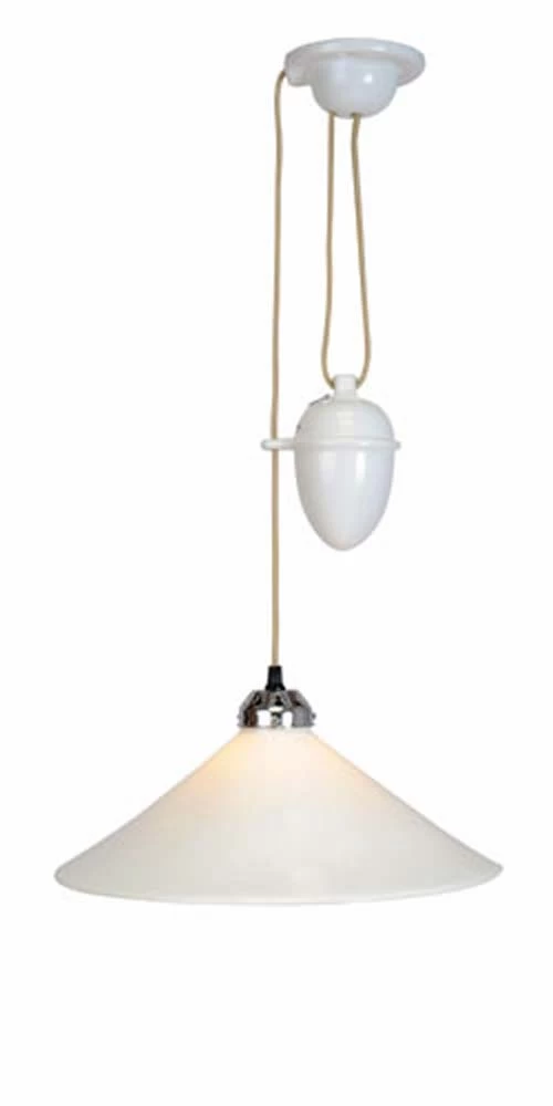 La suspension monte-et-baisse en porcelaine Cobb grand modèle s’inscrit en directe ligne du style des luminaires d’autrefois. Cette suspension trouve sa place avec distinction dans toutes les cuisines, qu’elles soient rustiques, campagnardes, de style industriel ou même très contemporaine. L’abat jour est réalisé dans une délicate porcelaine translucide. Ce monte-et-baisse éclaire principalement par le bas, mais émet aussi une douce lumière d’ambiance, grâce à la semi-transparence de la porcelaine utilisée. Un fil électrique recouvert de tissu s’accorde avec l’authenticité de ce luminaire. Le contrepoids est ovoïde, ainsi que la platine de plafond.