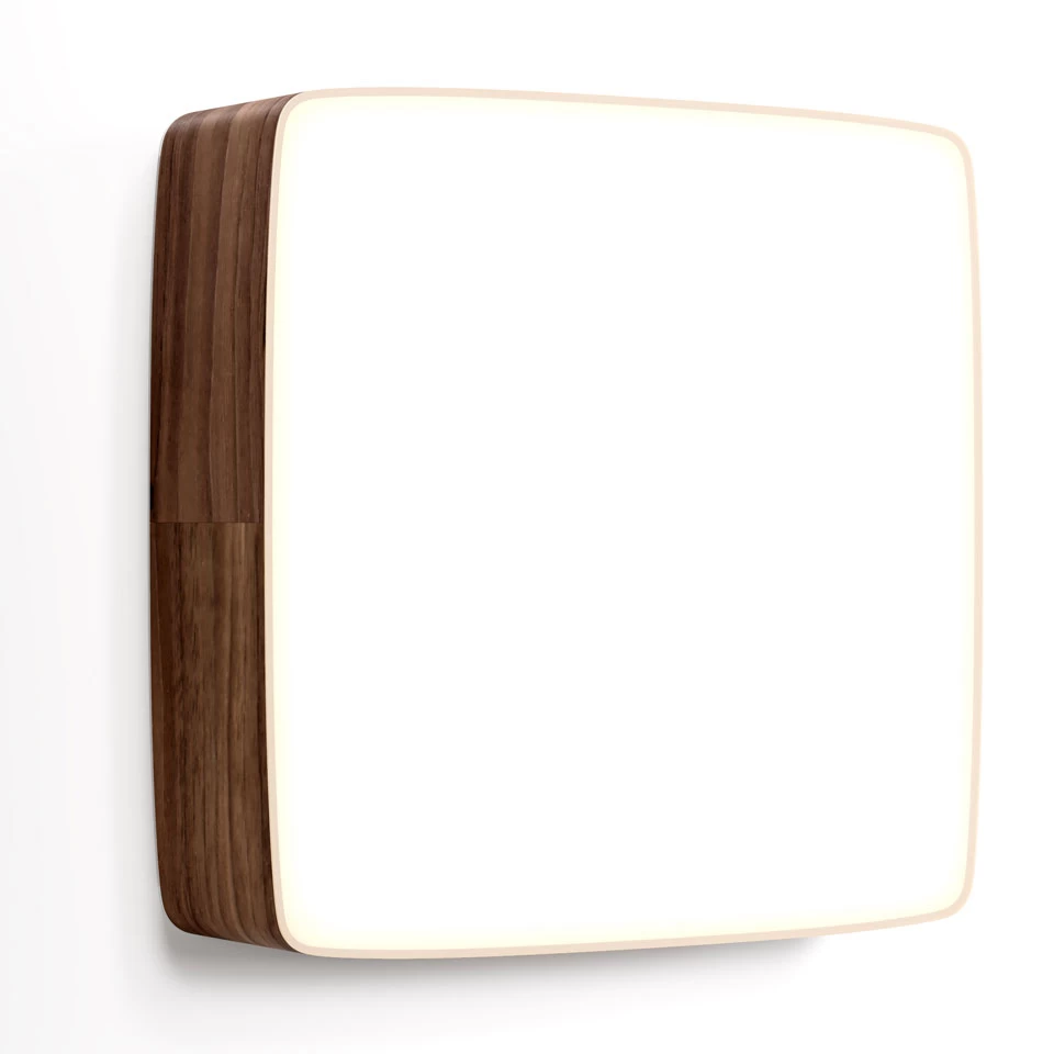 Vous avez ici le modèle grand modèle carré de la collection Cube, avec son grand format carré, son design scandinave minimaliste en noyer et panneau LED avec variateur intégré. L’applique est dotée d’un épais cadre aux angles arrondis en bois de noyer, une essence plus sombre que le chêne et qui amène un certain chic, sur lequel est encastré un panneau LED ultra-mince qui émet une lumière puissante et agréable, contrôlée par un variateur de lumière intégré qui permet de profiter de tout le potentiel de l’applique, qui peut également être utilisé comme plafonnier. Elle est équipée d’un boitier Bluetooth Casambi pour la variation de la lumière et le pilotage via une application sur smartphone.