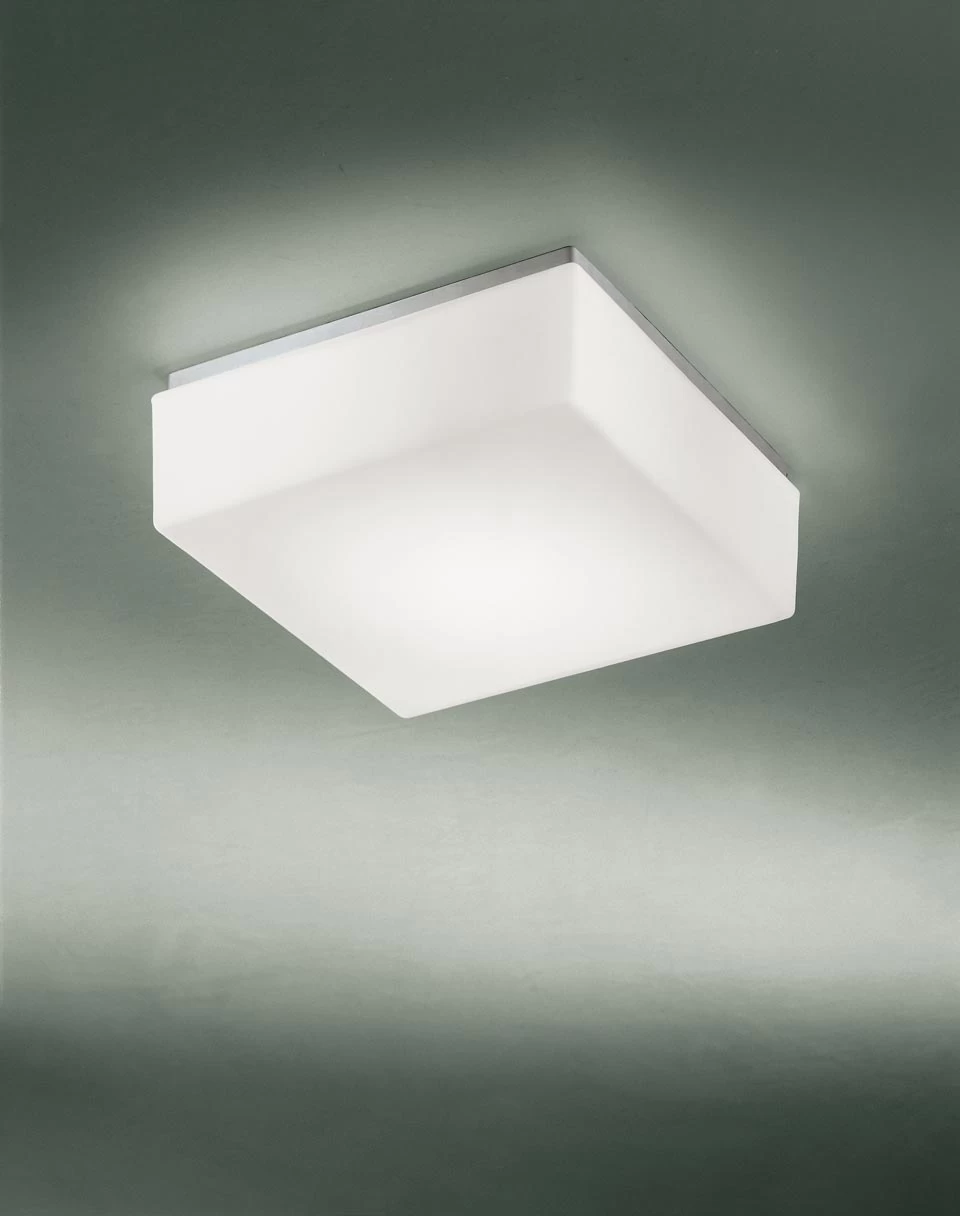 Sobre et efficace, ce plafonnier en verre soufflé blanc satiné est carré. Il est tenu par un support de plafond en métal laqué gris clair. Muni de 4 ampoules, il fournit un éclairage puissant. Facile d’entretien, il peut être installé dans une cuisine. Leucos est une compagnie qui allie le savoir faire traditionnel des maîtres verriers avec des créations ultra contemporaines et en faisant appel aux technologies de dernière génération. La collection Cubi comprend également une suspension visible sous la référence 16090109 et une applique sous la référence 16090138.