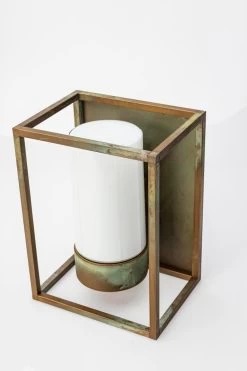 Belle applique d’extĂ©rieur grand format de la collection Cubic au design contemporain. C’est une lanterne rectangulaire faite en laiton, avec une finition vieillie parcourue de touches de vert-de-gris qui donne une patine authentique au modèle. A l’intĂ©rieur de la lanterne se trouve un cylindre de verre transparent qui accueille et protège l’ampoule. La maison italienne Moretti dĂ©veloppe des luminaires Ă partir d’excellent matĂ©riaux, et le laiton massif combinĂ© Ă une protection IP44 rend l’applique rĂ©sistante aux intempĂ©ries et en fait un modèle d’extĂ©rieur idĂ©al.