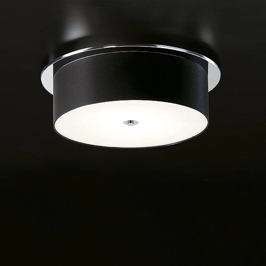 Avec une Ă©paisseur de 15cm, ce plafonnier s’insère facilement sous des plafonds de hauteur limitĂ©. Une platine de plafond circulaire en mĂ©tal chromĂ© soutient un abat-jour cylindrique en soie noire. Ce plafonnier appartient Ă la collection Delta Cromado. Les luminaires de la sĂ©rie Delta Cromado sont munis d’abat-jour lĂ©gèrement coniques en soie noire opaque, doublĂ©e intĂ©rieurement d’un revĂŞtement argentĂ©. Les Ă©lĂ©ments de structure sont rĂ©alisĂ© en mĂ©tal poli chromĂ©. Les lampadaires et lampes Ă poser bĂ©nĂ©ficient d’un pied Ă©vasĂ© et d’un socle massif, renforçant le caractère cossu de cette collection. ElĂ©gants, sobres et raffinĂ©s, ces luminaires peuvent ĂŞtre installĂ©s facilement dans des univers design, habitation et bureaux. La gamme Delta Cromado comprend: une applique, un plafonnier cylindrique, un plafonnier conique, une suspension simple, un lustre 2 lumières, trois tailles de lampes et un lampadaire.