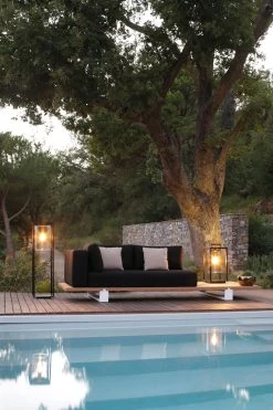 La maison belge Royal Botania propose une collection de luminaire outdoor au design raffiné dont le matériau essentiel est le teck, alliés à une préoccupation environnemental, notamment dans l’utilisation de bois provenant de forêts durables certifiées. Une lampe d’extérieur assortie est visible sous la référence 19040205.