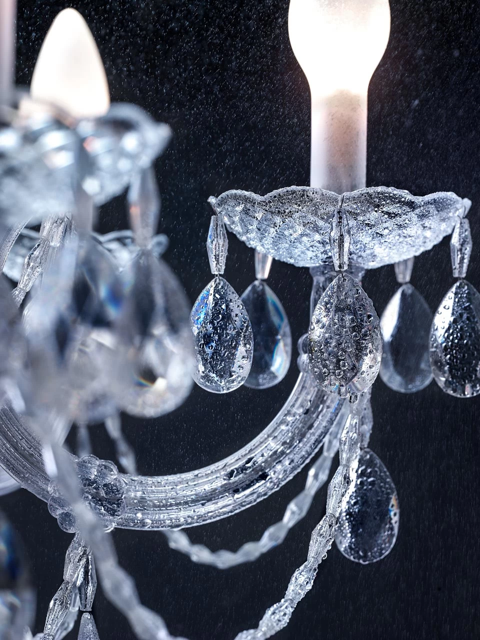 Imaginez cette grande lampe d’extérieur en forme de lustre 6 lumières fait d’acrylique transparente et perché sur un pied en polycarbonate illuminant votre jardin, elle est issue de la gamme Drylight qui nait de la volonté d’associer la superbe du lustre vénitien à la résistance aux conditions extérieurs corrosives, tant le sel, la pluie, que le froid ou les UV, d’où la protection IP65 des luminaires, combinée aux dernières innovations technologiques qui permettent un éclairage LED blanc ou RGBW activable par télécommande pour ce dernier, par application sur smartphone ou directement relié au système domotique du lieu. Le modèle est composé d’un socle en cloche pensé pour être fixé au sol, surmonté d’un pied en tube de polycarbonate noir droit couronné de ce superbe lustre vénitien doté de 6 bras en en demi-cercle fixés sur un enfilage central rond discret en polycarbonate, les bras sont chacun dotés d’un bassin en coupole délicatement façonnée en corolle de fleur et décorée de pampilles d’acrylique qui créé un effet de prisme. Les bassins sont surmontés d’ampoules allongées qui imitent la forme de bougies et qui accueillent les modules LED d’une température de couleur de 3000K pour ce modèle (blanc), et les bras sont reliés entre eux par de délicates chaines de verre qui s’entremêlement et étoffent le luminaire. Le module LED RGBW, abréviation anglaise de rouge, vert, bleu, blanc, permet par la combinaison de ces couleurs de créer une lumière de la couleur qui vous sied et façonner l’éclairage à souhait. La maison italienne Masiero réalise un parfait mariage entre l’esthétique vénitienne classique et la créativité permise par les innovations technologiques, pour une collection élégante et pléthorique.