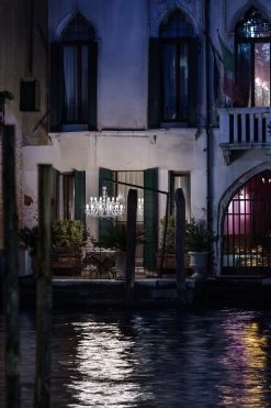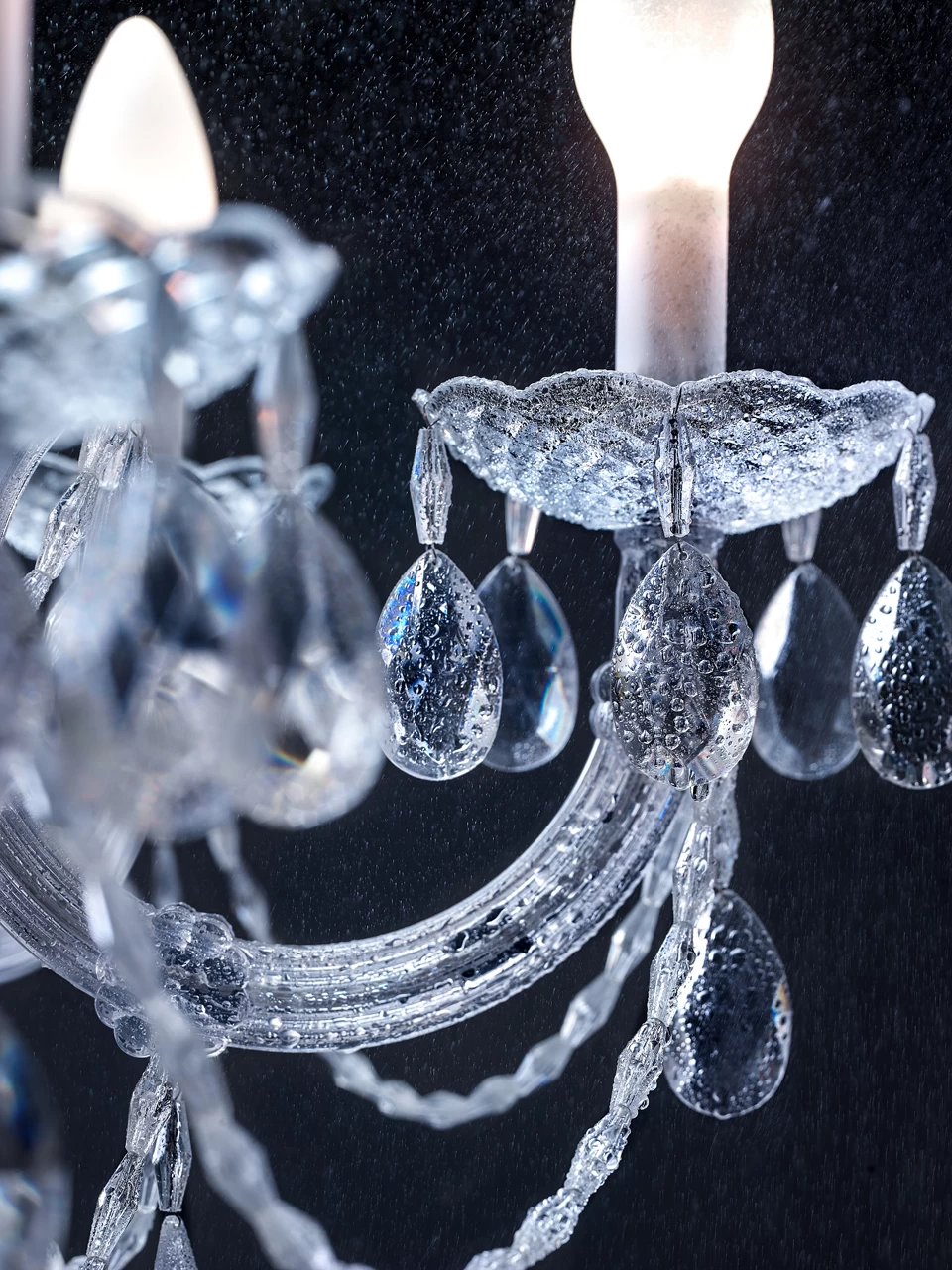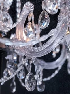 Remarquable lustre 18 lumières, issu de la gamme Drylight qui nait de la volonté d’associer la superbe du lustre vénitien à la résistance aux conditions extérieurs corrosives, tant le sel, la pluie, la pluie, que le froid ou les UV, ainsi les luminaires de la collection sont composés d’une structure en polycarbonate et acrylique transparente, dotés de la protection IP65 ainsi que des dernières innovations technologiques qui permettent un éclairage LED blanc ou RGBW activable par télécommande pour ce dernier, par application sur smartphone ou directement relié au système domotique du lieu. Ce modèle est doté de 18 bras en en col de cygne distribués sur deux niveaux autour d’un enfilage central rond discret en polycarbonate, et d’un fut en verre moulé de diverses sphères. Les bras sont chacun dotés d’un bassin en coupole délicatement façonnée en corolle de fleur et décorée de pampilles d’acrylique qui créé un effet de prisme. Les bassins sont surmontés d’ampoules allongées qui imitent la forme de bougies et accueillent les modules LED d’une température de couleur de 3000K pour ce modèle (blanc), et les bras sont reliés entre eux par de délicates chaines de verre qui s’entremêlement et étoffent le luminaire. Celui-ci est fixé par un crochet sur une tige verticale de 45cm et relié à un support de plafond en solide cylindre de polycarbonate noir. Le module LED RGBW, abréviation anglaise de rouge, vert, bleu, blanc, permet par la combinaison de ces couleurs de créer une lumière de la couleur qui vous sied et façonner l’éclairage à souhait. La maison italienne Masiero réalise un parfait mariage entre l’esthétique vénitienne classique et la créativité permise par les innovations technologiques, pour une collection élégante et pléthorique.