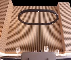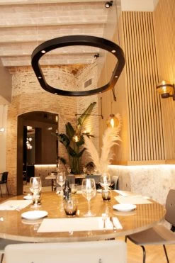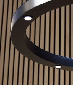 Les 6 points de lumière sont distribuĂ©s Ă intervalle rĂ©gulier autour de l’anneau mĂ©tallique ovale de la suspension minimaliste Espace 100cm. La structure en mĂ©tal simplement suspendue Ă l’horizontale par des câbles fins et discrets est travaillĂ©es d’une belle finition noir mat, et est dotĂ© d’un Ă©clairage prĂ©cis et concentrĂ© grâce Ă l’angle d’ouverture de 30° des petits spots encastrĂ©s le long de la structure. C’est un modèle qui convient particulièrement Ă une installation au-dessus d’une table de bureau, de rĂ©union, qu’elle soit rectangulaire ou ovale. La maison espagnole Luz Difusion en activitĂ© depuis 1985 dĂ©veloppe une collection qui mĂ©lange design industriel, rĂ©tro et minimaliste, avec une attention particulière pour la qualitĂ© des matĂ©riaux, essentiellement le verre et le mĂ©tal.