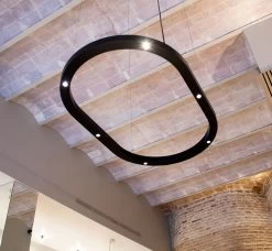 Les 6 points de lumière sont distribuĂ©s Ă intervalle rĂ©gulier autour de l’anneau mĂ©tallique ovale de la suspension minimaliste Espace 100cm. La structure en mĂ©tal simplement suspendue Ă l’horizontale par des câbles fins et discrets est travaillĂ©es d’une belle finition noir mat, et est dotĂ© d’un Ă©clairage prĂ©cis et concentrĂ© grâce Ă l’angle d’ouverture de 30° des petits spots encastrĂ©s le long de la structure. C’est un modèle qui convient particulièrement Ă une installation au-dessus d’une table de bureau, de rĂ©union, qu’elle soit rectangulaire ou ovale. La maison espagnole Luz Difusion en activitĂ© depuis 1985 dĂ©veloppe une collection qui mĂ©lange design industriel, rĂ©tro et minimaliste, avec une attention particulière pour la qualitĂ© des matĂ©riaux, essentiellement le verre et le mĂ©tal.