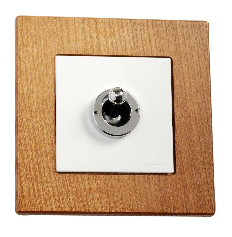 En bois de merisier, cet interrupteur de la série F-37 de Fontini est muni d’un levier rond chromé et d’un intérieur blanc mat. Cet interrupteur est entouré d’une plaque en bois. Le bois de merisier, par sa couleur naturelle très tendance, apporte une tonalité contemporaine discrète et sobre. Les produits de la gamme F-37 intègrent des mécaniques modernes, aux normes, et s’installent sur toutes les boîtes d’encastrement standard: aucun problème à l’installation.