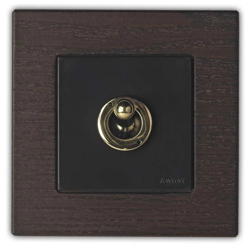 Equipé d’un levier en bronze antique, cet interrupteur de la série F-37 de Fontini est muni d’un levier rond. L’intérieur est marron foncé mat. Cet interrupteur est entouré d’une plaque en bois wengé. Le bronze antique permet une intégration facile dans des univers décoratifs classiques, la forme carrée apporte une touche de modernité fonctionnelle de bon aloi. Les produits de la gamme F-37 intègrent des mécaniques modernes, aux normes, et s’installent sur toutes les boîtes d’encastrement standard: aucun problème à l’installation.