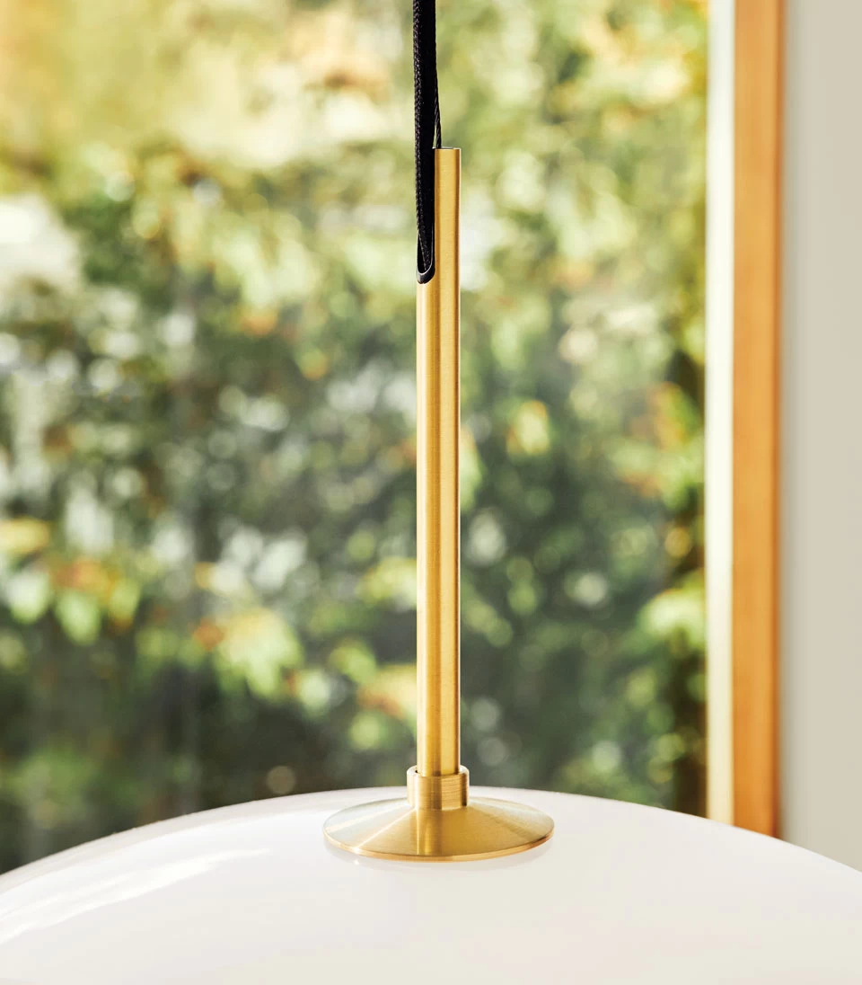 DĂ©licate et raffinĂ©e tel un coquillage cachant sa perle, la suspension Clam 44cm porte bien son nom, avec son diffuseur en verre soufflĂ© opale dont l’ouverture est rĂ©glable et ses Ă©lĂ©ments dorĂ©s en laiton. Le modèle se compose de deux diffuseurs en demi-sphères qui s’emboitent l’un dans l’autre reproduisant l’effet d’un coquillage, remarquez la finesse du matĂ©riau, le verre est soufflĂ© Ă la bouche rendant chaque pièce unique. Le diffuseur est montĂ© sur une tige verticale de laiton dorĂ© Ă©quipĂ©e d’une molette qui permet d’ajuster le degrĂ© d’emboitement des deux pièces, et proposant ainsi une multitude de scĂ©nario de diffusion de la lumière. Le tout est suspendu par un câble de textile noir. Notez que le laiton est non-verni, pour produire naturellement avec le temps cette dĂ©licieuse patine qui magnifiera l’opale du verre. Les crĂ©ations de la maison nĂ©erlandaise Fritz Hansen façonnent les intĂ©rieurs depuis 1872 siècle, appliquĂ© dès les annĂ©es 20 au monde de la lumière avec une sĂ©rie de collections intemporelles et Ă©purĂ©es fruit de collaborations avec les plus grands designers.