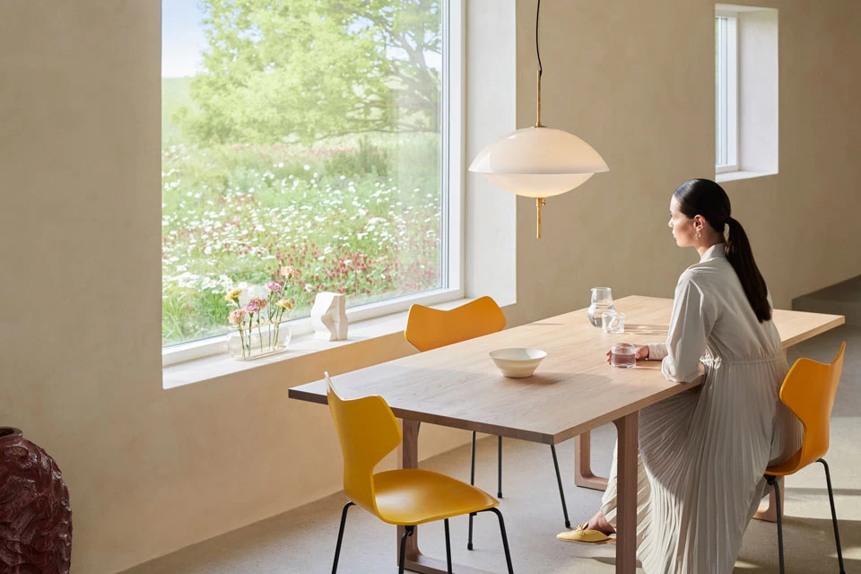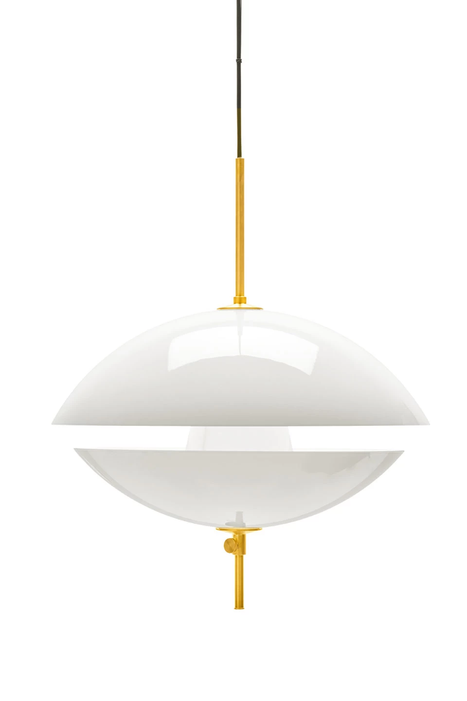 Délicate et raffinée tel un superbe coquillage cachant sa perle, la suspension Clam 55cm porte bien son nom, avec son diffuseur en verre soufflé opale dont l’ouverture est réglable et ses éléments dorés en laiton. Le modèle se compose de deux diffuseurs en demi-sphères qui s’emboitent l’un dans l’autre reproduisant l’effet d’un coquillage. Remarquez la finesse du matériau, le verre est soufflé à la bouche rendant chaque pièce unique. Le diffuseur est monté sur une tige verticale de laiton doré équipée d’une molette qui permet d’ajuster le degré d’emboitement des deux pièces, et proposant ainsi une multitude de scénario de diffusion de la lumière. Le tout est suspendu par un câble de textile noir. Notez que le laiton est non-verni, pour produire naturellement avec le temps cette délicieuse patine qui magnifiera l’opale du verre. Les créations de la maison néerlandaise Fritz Hansen façonnent les intérieurs depuis 1872 siècle, appliqué dès les années 20 au monde de la lumière avec une série de collections intemporelles et épurées fruit de collaborations avec les plus grands designers.