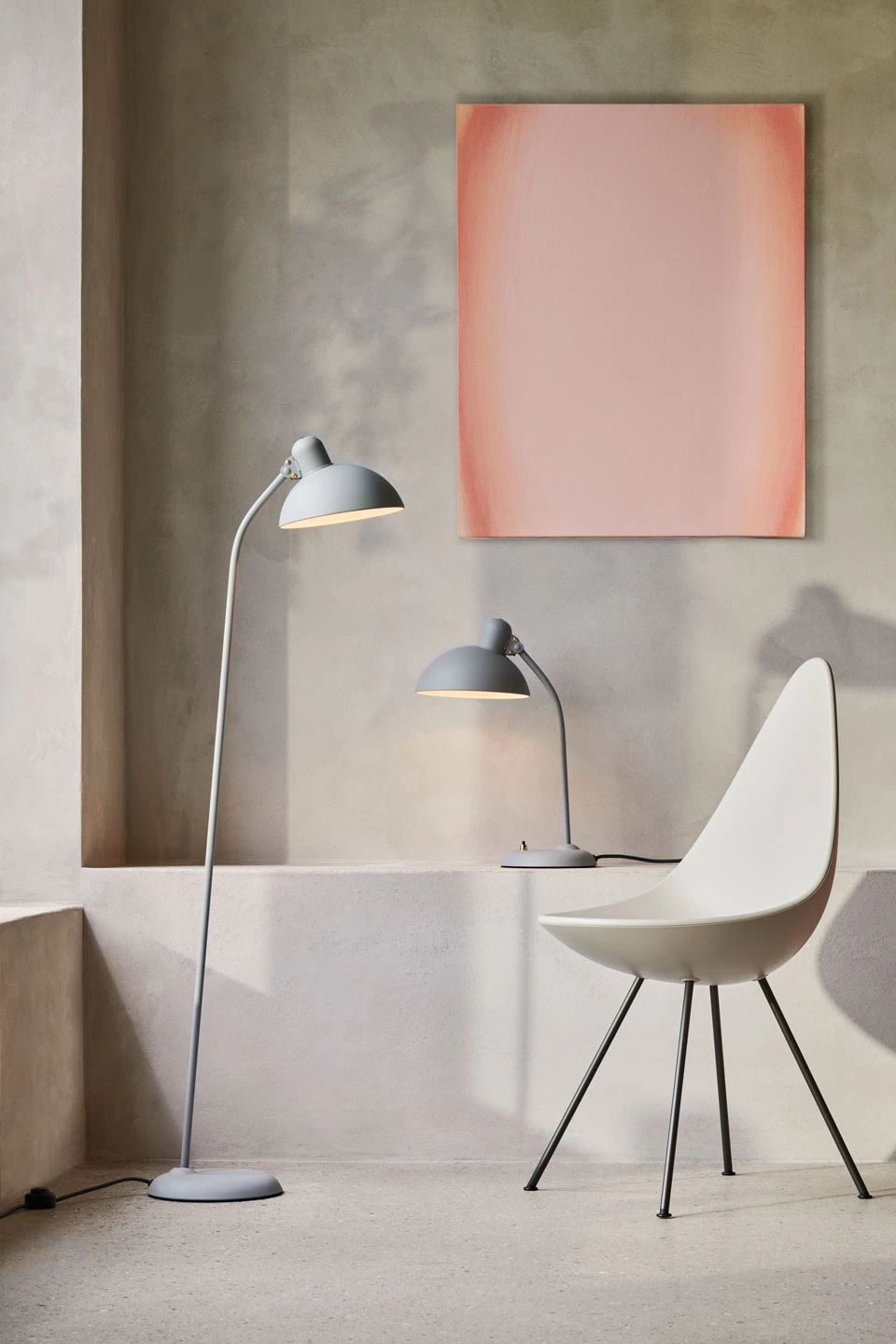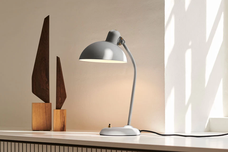 Kaiser Idell, lampe de bureau gris clair aux airs rétro épurés ne manquera pas de séduire les amateurs d’une esthétique inspirée du Bauhaus, avec sa structure en acier tout en rondeur, son abat-jour en cloche asymétrique et ses détails de laiton doré. La lampe aux proportions harmonieuses est dotée d’un socle rond, équipé d’un interrupteur noir et or à pressoir, surmonté d’un pied d’une pièce en tube droit puis légèrement courbe, et d’un abat-jour en cloche, l’ensemble est entièrement réalisé en acier gris clair mat et parsemé des petites touches dorées que sont les vis de laiton de la lampe. Incontournable dans le monde du design nordique, la maison Fritz Hansen décline ses luminaires à la ligne épurée et intemporelle qui transforment indéniablement tout intérieur dans lequel ils sont placés, bénéficiant d’un savoir-faire qui remonte à 1872, date de la création de la première entreprise Fritz Hansen.
