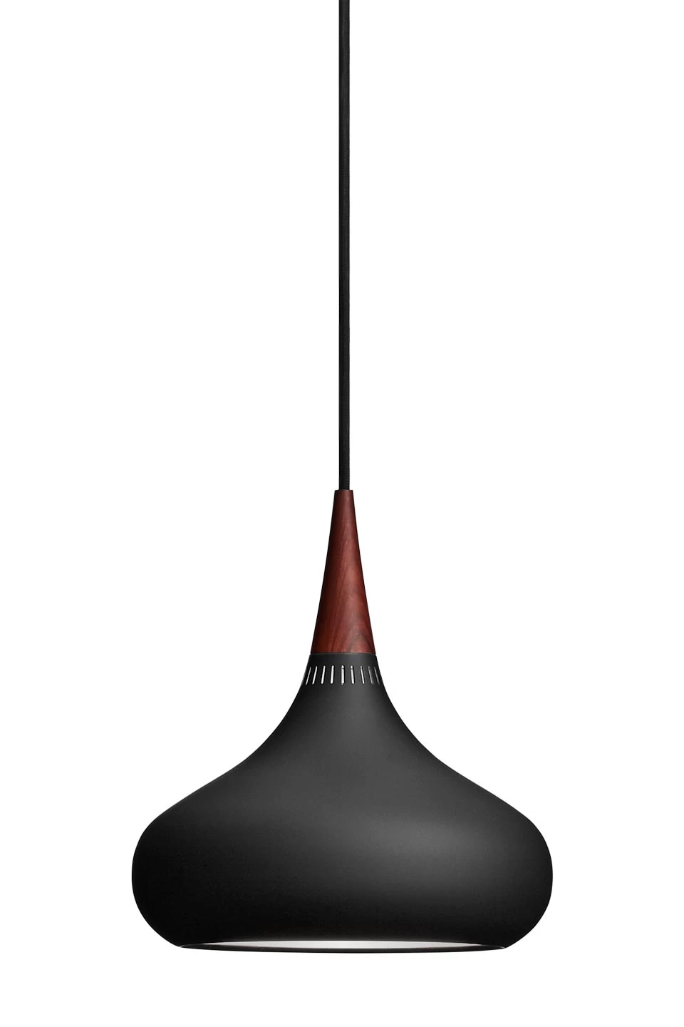 Très beau travail pour cette petite suspension Orient en mĂ©tal laquĂ© noir mat et attache en bois de rose. Elle est munie d’un cĂ´ne de suspension noir et d’un cordon d’alimentation et de suspension recouvert de tissu noir finement tissĂ© d’une longueur de 3m. Cette gamme de luminaire dessinĂ©e par Jo Hammerborg est rĂ©alisĂ©e avec des matĂ©riaux de très grande qualitĂ©. Elle offre une belle lumière reflĂ©tĂ©e dans le cuivre et le dessus en bois de rose grâce Ă de petites fentes ouvertes sur le dessus de la coupole qui permettent Ă©galement la diffusion de la lumière. Existe aussi en diamètre 34cm rĂ©fĂ©rence 21030542 et diamètre 50cm rĂ©fĂ©rence 21030543.