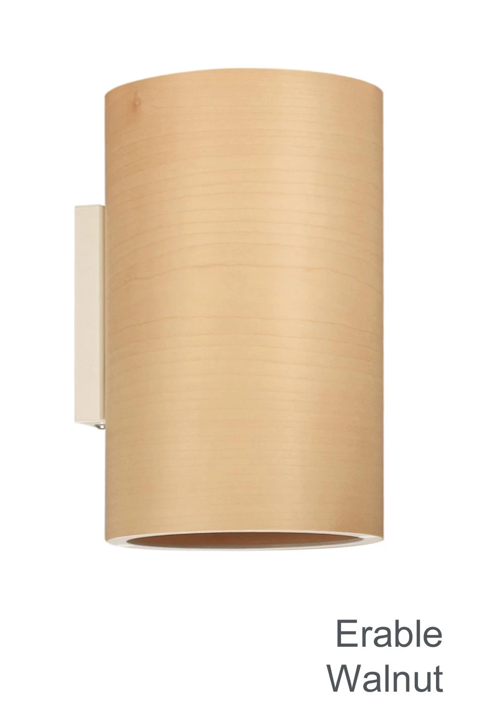 Naturelle, sobre, indémodable, cette applique Funk en bois d’érable apporte une lumière chaude, abondante et plaisante à votre intérieur. L’abat-jour cylindrique d’une largeur de 16cm est réalisé à partir d’une feuille de bois d’érable découpé en une tranche ultra fine d’une épaisseur de 0.5mm seulement. Le bois est formé en cylindre, puis apposé sur la structure métallique de l’abat-jour. Un vernis de protection est alors aposé sur le bois. Le support mural en acier blanc est recouvert d’un revêtement cuit au four d’une très grande durabilité. Lorsqu’on éclaire l’ampoule de 60W qui équipe cette applique, l’abat-jour translucide s’éclaire et laisse voir toutes les veines du bois. Cette applique existe aussi en bois de noyer, à choisir parmi les options de commande ci-dessous. Attention, la disposition des veines claires et sombres peut varier en fonction de l’exemplaire réalisé – conséquence de l’emploi de matières 100% naturelles. La collection Funk de 13° (Dreizehngrad en toutes lettres) comprend également une lampe de table (référence 12050700), un lampadaire (référence 12050704) et plusieurs autres modèles de suspensions (12050706, 12050710, 12050714). Toutes sont disponibles en érable et en noyer. Ce luminaire est fabriqué à la main en Allemagne, dans les ateliers de Dreizehngrad, situés dans la ville d’Alpirsbach, dans la Forêt Noire.