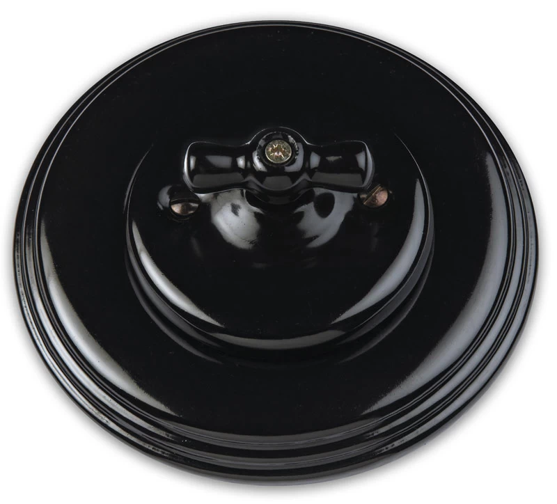 Garby Interrupteur Porcelaine Noire Rotatif En Applique Ă Oreillette Va Et Vient