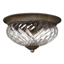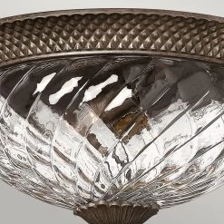 Ravissant grand plafonnier de la collection classique Plantation, inspirĂ©e du dessin gĂ©omĂ©trique de l’ananas, tout en verre optique et mĂ©tal finition bronze. Le modèle est composĂ© d’un support de plafond rond moulĂ© d’un motif en losange en relief imitant la peau du fruit exotique, d’un dĂ´me de verre optique marquĂ© de lĂ©gères spirales qui suggèrent de nouveau le motif en losange, le tout couronnĂ© par une petite rosace, et dotĂ© d’une Ă©lĂ©gante finition bronze qui confère une patine authentique au modèle. L’impeccable fabrication est celle de la maison britannique Elstead lighting, connue depuis le XVIIème siècle comme les forges Elstead, aujourd’hui alliant la perpĂ©tuation des techniques artisanales Ă une vĂ©ritable modernitĂ© dans le design et la rĂ©alisation.