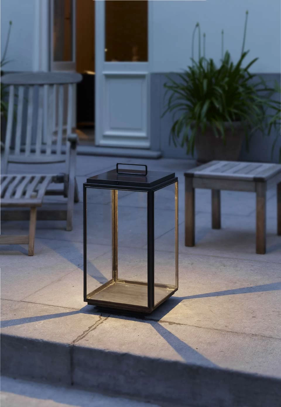 Réalisée en bronze, cette grande lampe de jardin Ilford apporte élégance et beauté aux terrasses et jardins des plus belles demeures. Au cours de sa fabrication, cette lampe reçoit une patine sombre, dite antique. Rigoureusement assemblée, cette lampe de jardin est adaptée à un usage extérieur, en respectant la norme d’étanchéité IP44. Le bronze qui la constitue est insensible à la corrosion. Ses dimensions sont importantes, avec une hauteur de 54cm. Malgré son style classique et la réalisation artisanale en matériaux nobles de sa structure, cette lampe de jardin est disponible avec trois technologies d’éclairage basse consommation: (i) raccordée directement au secteur 230V et équipée d’une lampe à basse consommation, (ii) raccordée directement au secteur 230V et munie d’une puissante ampoule LED, et (iii) équipée de la même ampoule LED et d’une batterie Li-ion fournissant onze heures d’autonomie – ce qui permet d’éclairer son balcon, son jardin ou sa terrasse au gré des envies et des moments. Dans les 2cas, la source de lumière est cachée dans la partie supérieure de la lampe, qui fournit ainsi un éclairage homogène, raffiné et non éblouissant. Ces 2 modèles sont disponibles dans les options de commande au bas de cette page. Le modèle avec batterie est naturellement fourni avec un chargeur. Compte tenu de sa très basse consommation et de la très grande durée de vie de leur source de lumière, les lampes à raccordement direct peut être laissée éclairée en permanence, toute l’année.