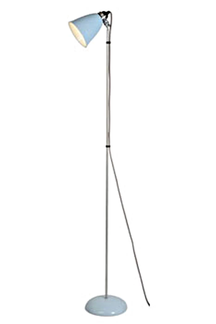 Ce lampadaire bleu moyen modèle appartient à la gamme Hector, d’un style typiquement britannique. Elle est équipée d’un abat-jour en forme de coupole de 15cm de diamètre, fabriqué en porcelaine translucide d’une grande finesse. fil d’alimentation est recouvert de tissu, et est relié directement à la tête de la lampe. L’ensemble bénéficie d’une remarquable qualité de fabrication, et d’un design indémodable. Ce lampadaire produit à la fois une lumière dirigée et un doux éclairage d’ambiance, grâce à la semi-transparence du réflecteur.