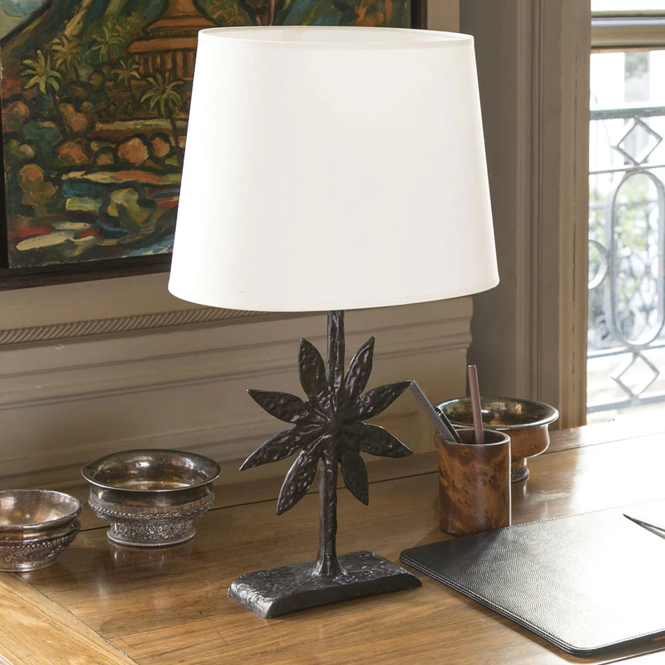 Une lampe de table sous le signe de l’astre solaire, comme le souligne son nom Helios, ainsi que son pied finition bronze patiné décoré d’un soleil. Le modèle est doté d’un socle rectangulaire, surmonté d’un pied vertical simple moulé d’un soleil à 8 rayons, et coiffé d’un large abat-jour ovale en chintz écru. Le tout en bronze massif de la meilleure qualité et travaillé de façon à produire cette texture irrégulière, magnifiée par une finition patinée, issue de la fonderie d’art, obtenue par oxydation à chaud du bronze qui est teinté puis ciré, offrant une protection inaltérable et une couleur chaude et naturelle. Ce modèle de faible profondeur est idéal à disposer sur un meuble étroit. Objet Insolite est une maison française qui crée des luminaires au sein de ses ateliers normands depuis 1981, et qui bénéficie du label Entreprise du Patrimoine Vivant, distinction accordée par l’état qui reconnait les entreprises françaises à la production artisanale et industrielle d’exception.