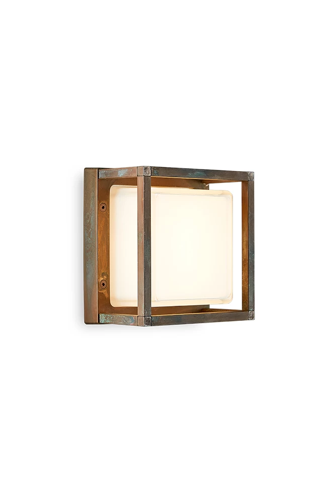 Lola Applique D’extérieur Vert Patiné En Bronze Et Verre Blanc