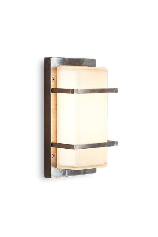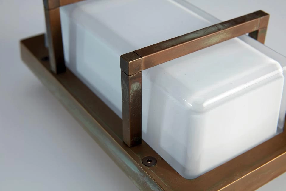 Une touche élégante pour cette applique d’extérieur dotée de protection IP65 de la collection Ice Cubic, avec son support mural rectangulaire en métal doté d’une finition nickel qui donne cette couleur argentée au modèle, et équipée d’un diffuseur en volume de verre opale fixé sur le support mural et simplement cerné de deux bandeaux de section carré de métal. La maison italienne Moretti utilise un laiton massif d’excellente qualité, et l’applique est doté de la protection IP65 qui garantit un haut degré de protection face aux intempéries, tant la corrosion du sel en bord de mer par exemple, que l’action du froid en montagne.
