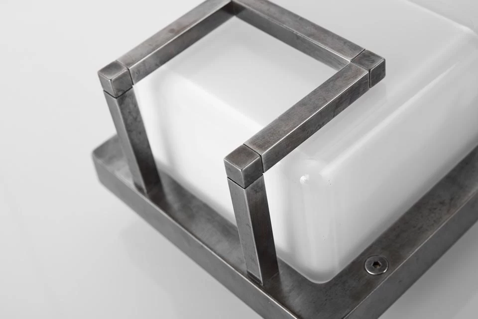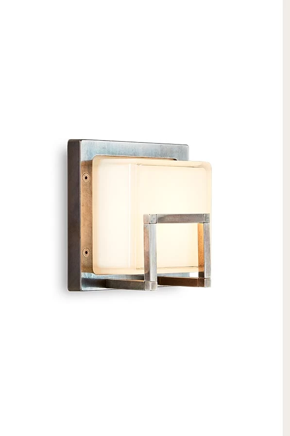 Jolie petite applique d’extĂ©rieur aux airs vintage de la collection Ice Cubic, qui allie protection IP65 et Ă©clairage puissant Ă un support mural carrĂ© de laiton massif moulĂ© sous pression, sur lequel est encastrĂ© un volume carrĂ© de verre opale. Le diffuseur est protĂ©gĂ© par un petit cadre fait de segment carrĂ© de mĂ©tal, et l’ensemble du modèle est en laiton finition brut qui donnera avec le temps cette patine dorĂ©e authentique. La maison italienne Moretti utilise un laiton massif d’excellente qualitĂ©, et l’applique est dotĂ© de la protection IP65 qui garantit un haut degrĂ© de protection face aux intempĂ©ries, tant la corrosion du sel en bord de mer par exemple, que l’action du froid en montagne.