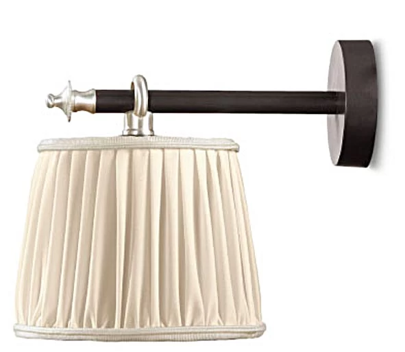 Cette très belle applique Joseph L en bronze vieil antiquaire est constituée d’un support mural cylindrique, poursuivi par un bras horizontal, portant l’abat-jour et décoré à son extrémité par un ornement en pointe. L’élément métallique vertical est joliment relié au bras par une bride en boucle. L’abat-jour est tendu de soie ivoire plissée. Parmi les options de commande ci-dessous, cette applique est également disponible dans sa version Joseph H, où l’abat-jour est placé au-dessus de du bas horizontal.