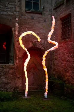 Joshua Outdoor RGB est un lampadaire d’extérieur protection IP44 fait en une matière synthétique non tissée semblable à du papier froissé, posée sur un support flexible pouvant prendre toute les formes. Le diffuseur est équipé d’ ampoules Led RGB à la palette multicolore + blanc. Son large socle en inox apporte une grande stabilité à l’ensemble. Le corps, long de 430cm est bordé d’une surpiqure noire, le câble d’alimentation, long de 600cm est en tissu noir coordonné. Le lampadiare est livré avec sa télécommande qui sert à la fois d’interrupteur, de variateur d’intensité et variateur de couleurs. Ce modèle existe également en LED blanches sous la référence 15090265.