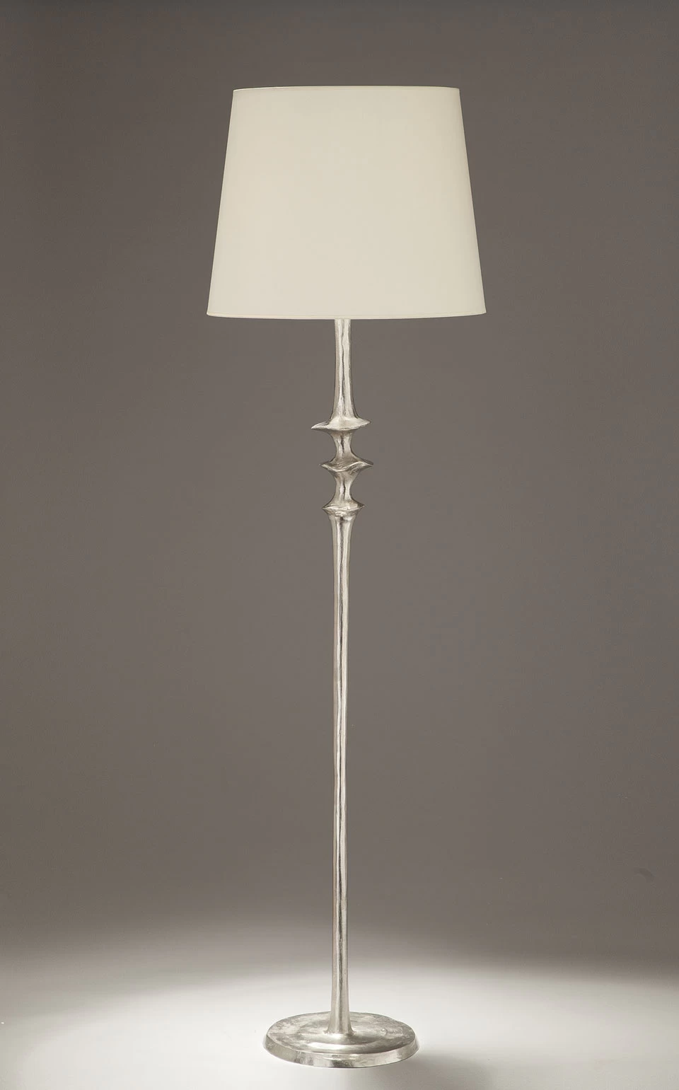 Discrétion et raffinement pour le lampadaire Mancha en bronze massif dans sa version finition nickel patiné. Son large abat-jour blanc conique contraste avec la finesse de son pied. La pureté de son dessin souligne l’élégance et la noblesse du bronze et le destine aux plus beaux intérieurs. Produit entièrement en France dans les ateliers de son créateur, le bronzier Augustin Granet, le lampadaire Mancha, supportant 3 ampoules de 100W chacune, permet un éclairage puissant. Livré par défaut avec l’abat-jour proposé sur cette image, un autre tissu peut être cependant choisi dans le nuancier visible en photo complémentaire sur cette page, choix à préciser dans les informations spéciales de votre formulaire de commande. Le lampadaire Mancha existe en bronze noir patiné sous la référence 17090387 et en bronze doré sous la référence 17090388.