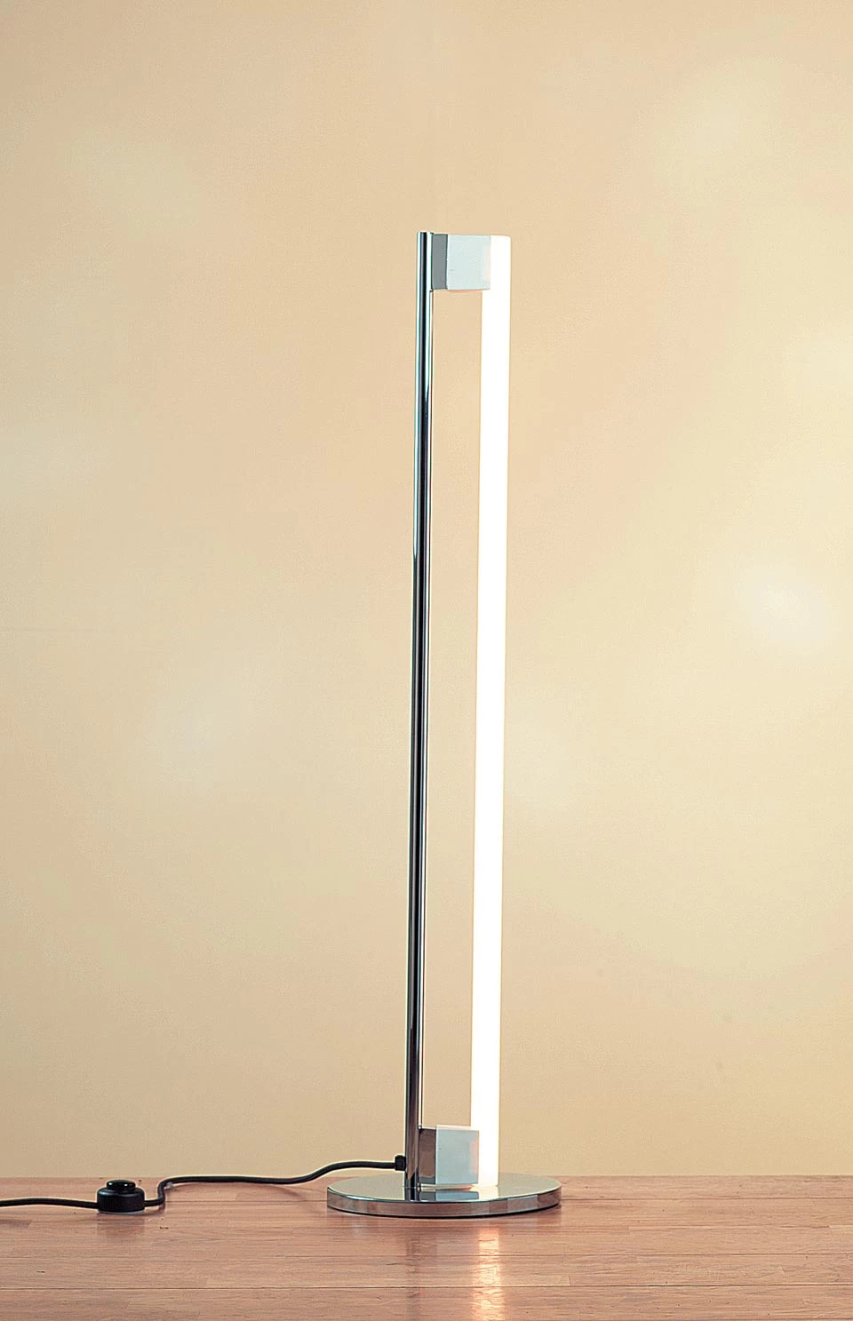 Ce grand lampadaire est très vintage, avec sa grande tige verticale d’acier massif chromé sur un petit socle rond, doublé d’un tube à incandescence Linestra blanc. Ce modèle au design minimaliste est idéal pour un bureau ou pour un salon.